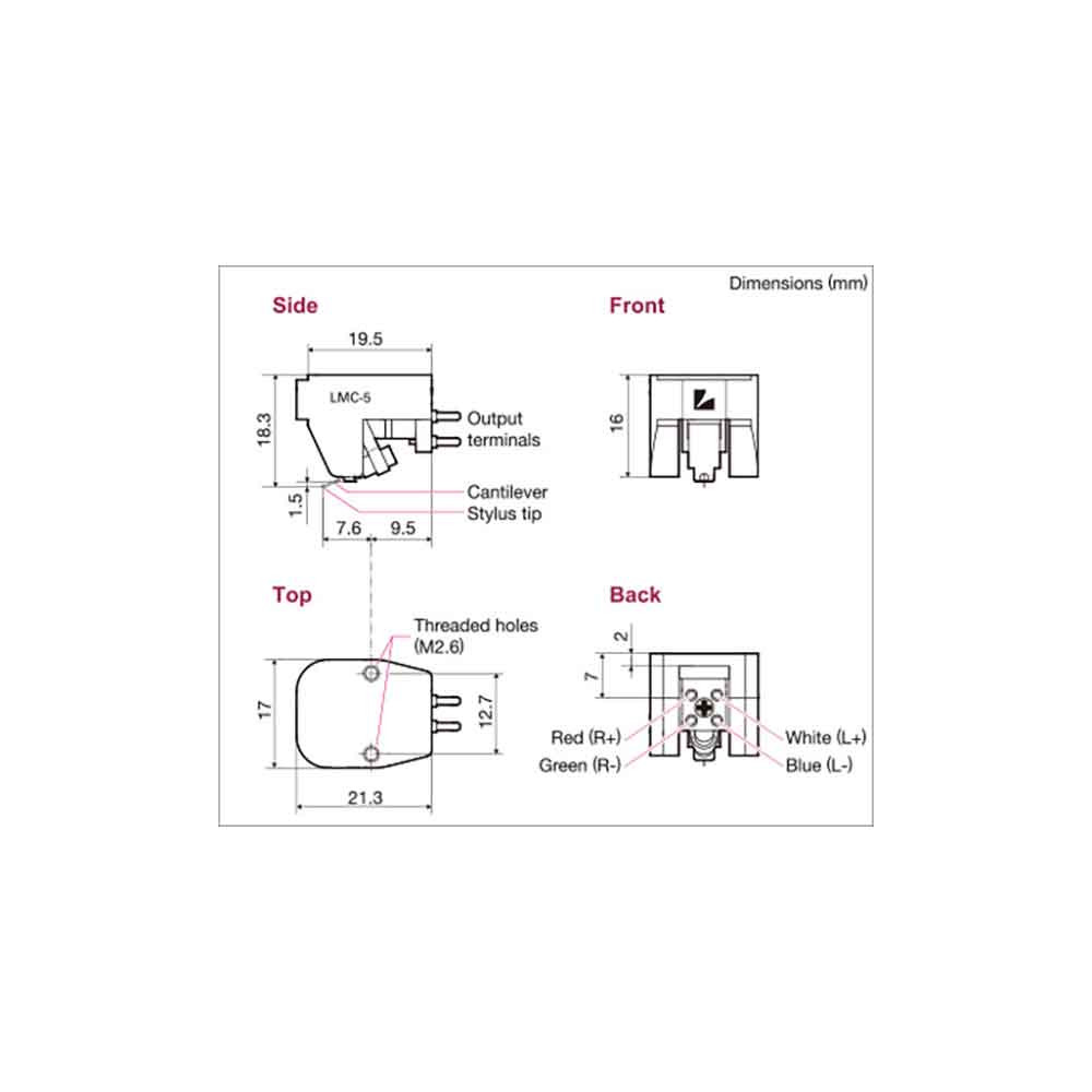 After a development period of 2 years, the LMC-5 is LUXMAN’s first original cartridge in 40 years. For the stylus, in order to read the musical information pressed on the record accurately and reliably, we selected a combination of an aluminum cantilever with high tracing ability and a SHIBATA stylus to pick up a large amount of information with less audible noise. In order to secure the fulcrum of the vibration system, a low distortion structure has been realized by using the one-point “piano wire” support method. The MC type power generator engine uses a cross mounted iron core with the coils for the left and right channels wound symmetrically. Adopting a magnetic structure with a small field area reduces the intrusion of external noise. We have achieved significant size and weight reductions.